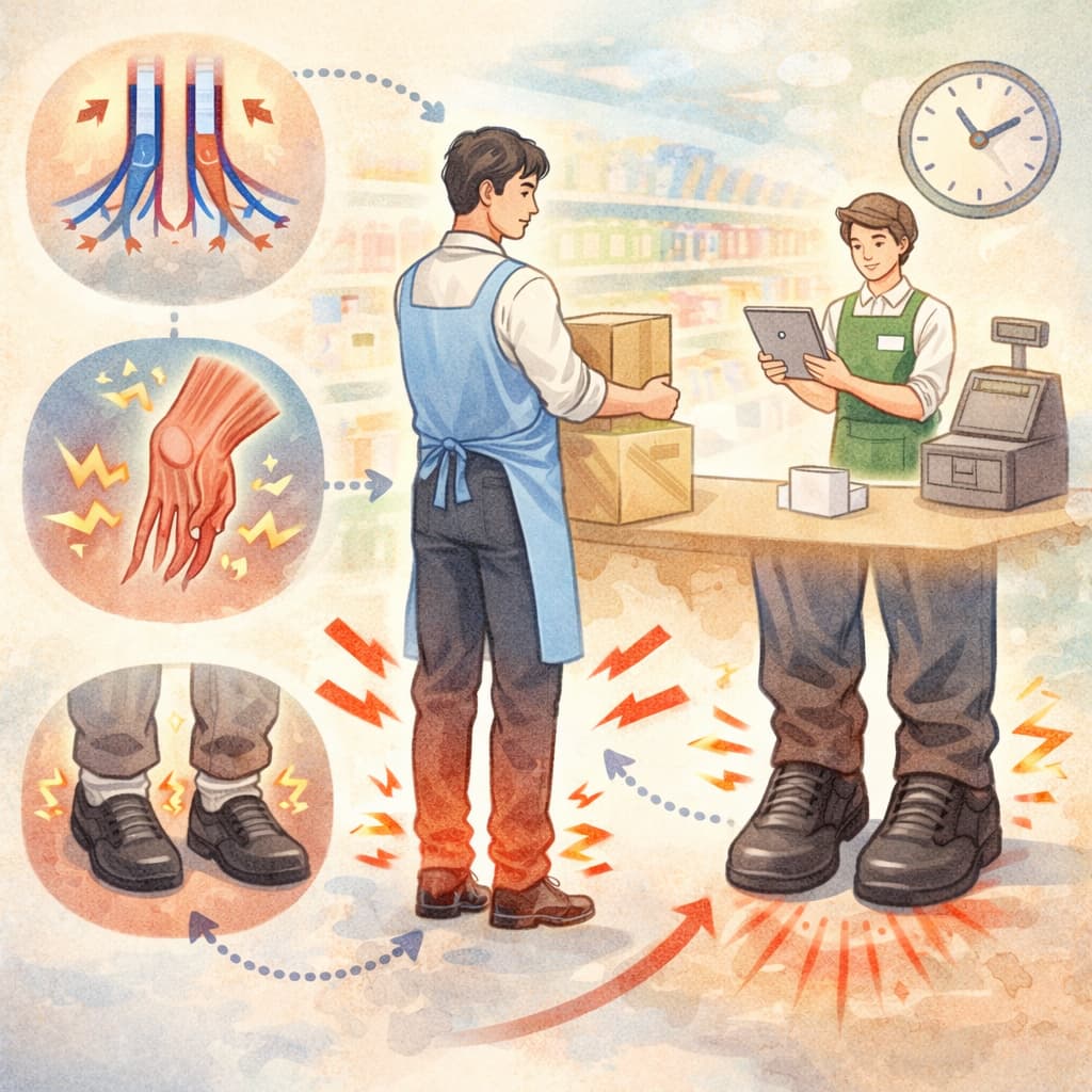立ち仕事は一見すると単純な動作の繰り返しに思えますが、実際には体のさまざまな部分を使い続けています。