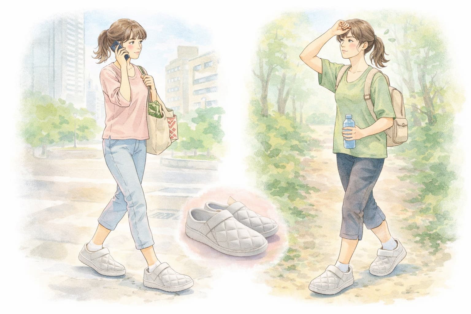 普段とは履き心地や足裏の感覚が少し異なると感じる人もいるため、短時間の外出から始めて、徐々に慣らしていくのがおすすめです。