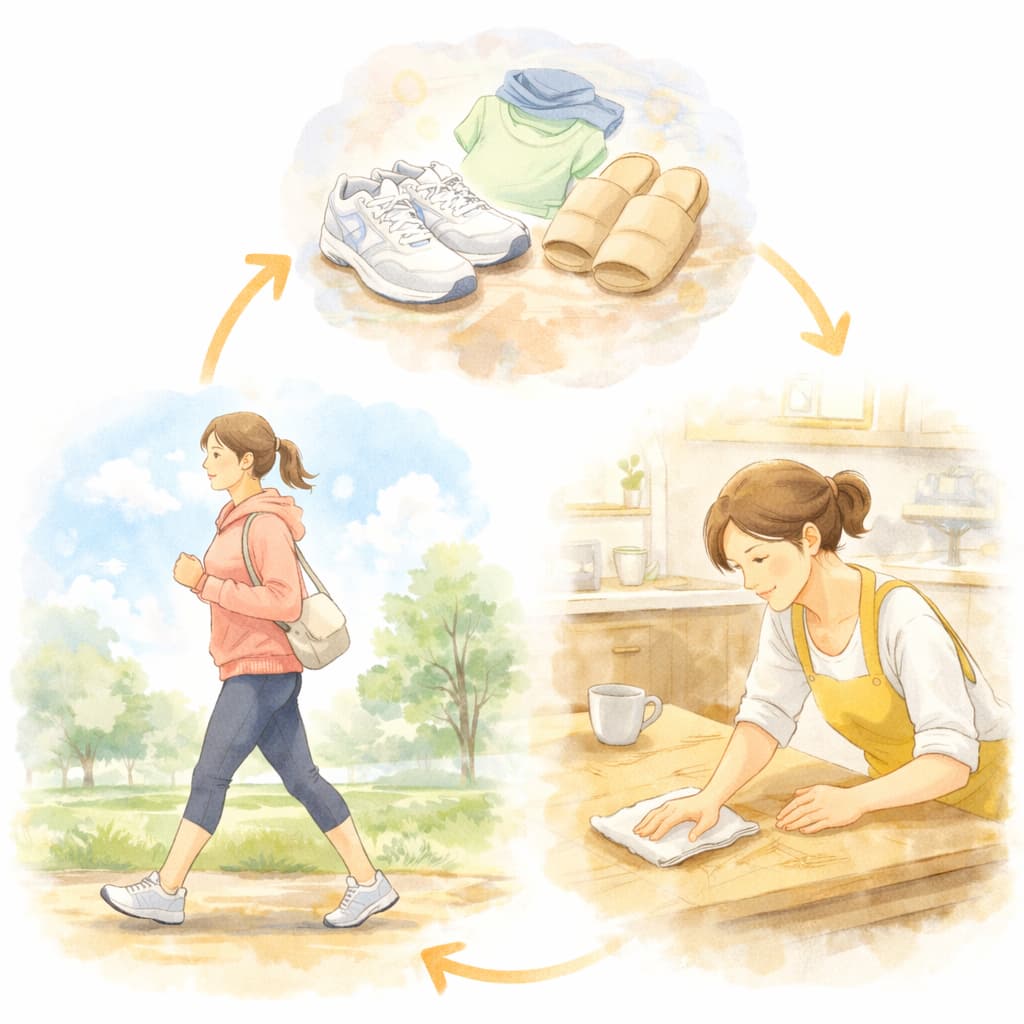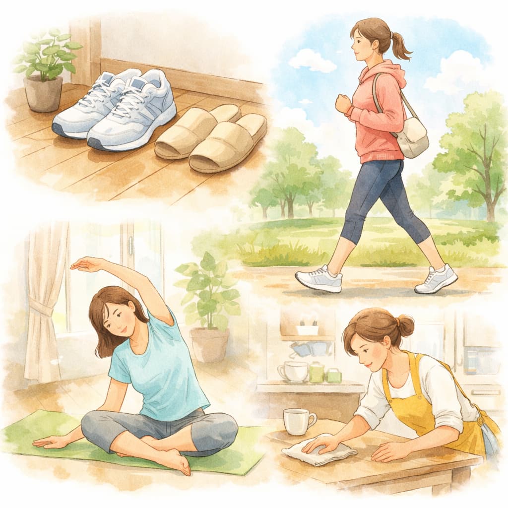 掃除や買い物、移動といった日常動作の中で自然に体を使っていれば、「何もしていない」という感覚になりにくくなります。