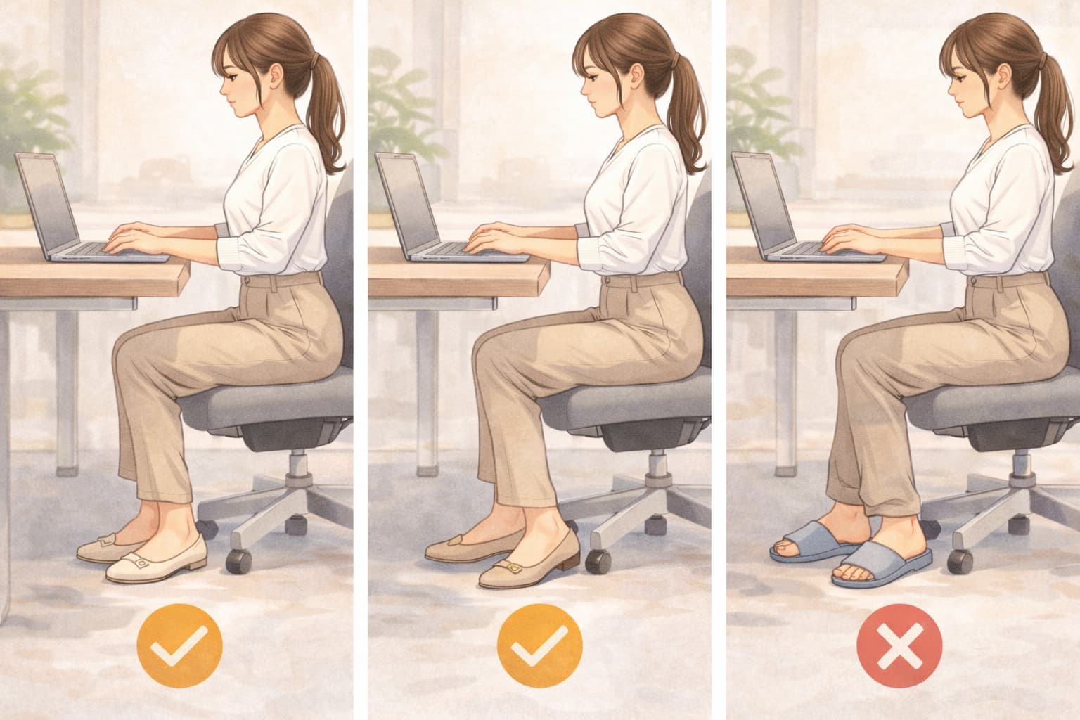 画面越しの印象や、ふと立ち上がったときの雰囲気まで含めて考えることで、無理なく整った足元を保つことができます。