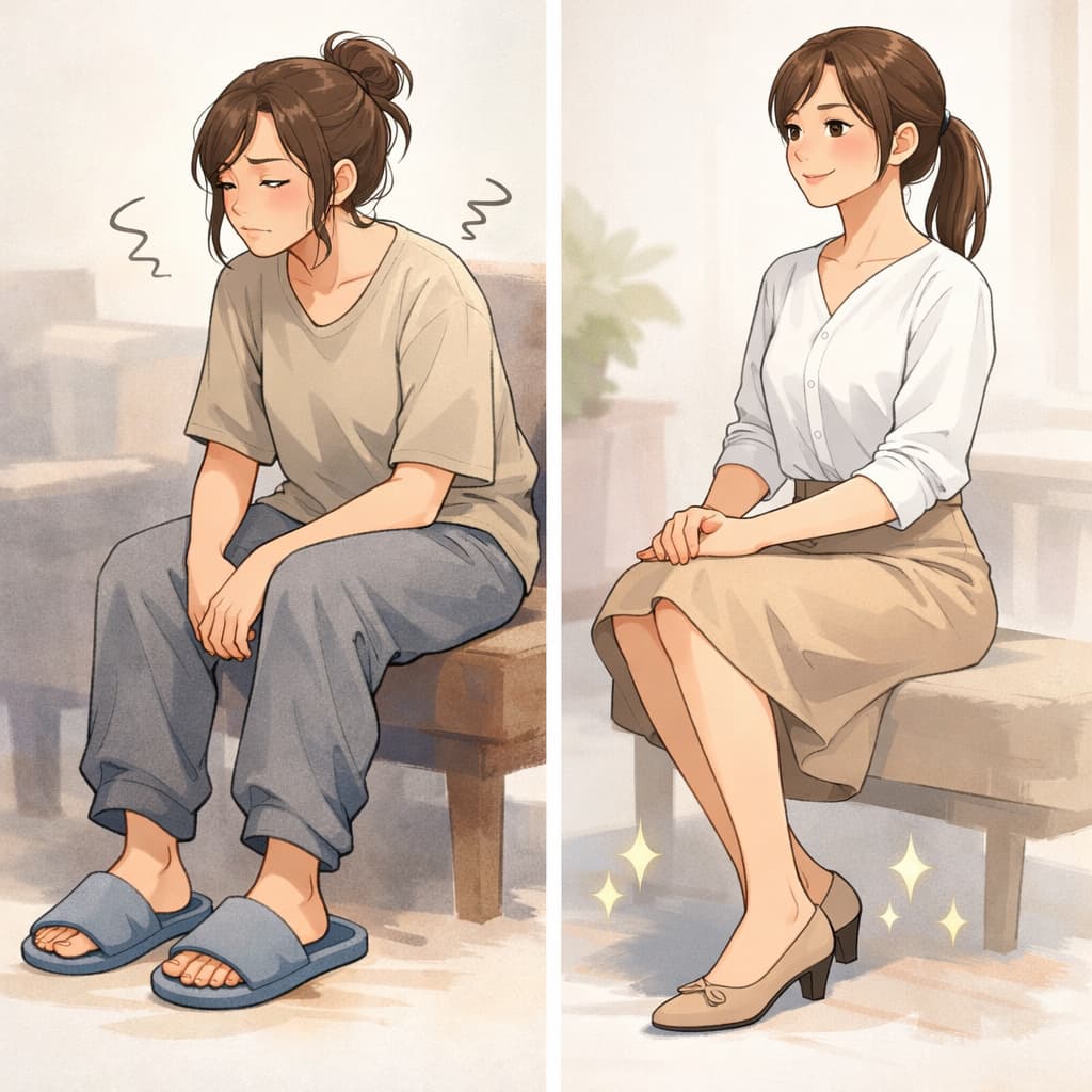 底の安定感や見た目の整いを意識しておくことで、「楽だけどだらしなく見えない」状態を自然に保つことができます。