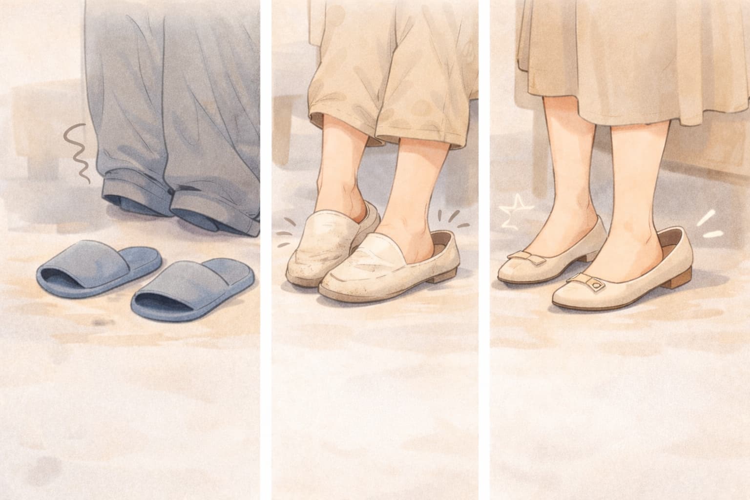 楽な履き物であっても、扱い方が丁寧であれば、その人らしいきちんと感は自然と伝わります。