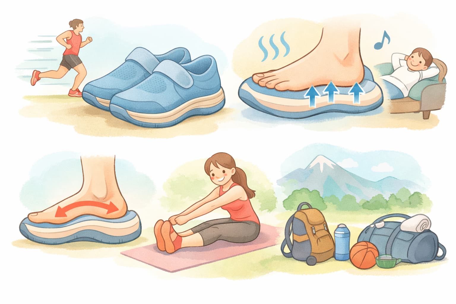 あくまで活動後の身体を整えるための補助的な存在であり、足にかかった負担をこれ以上増やさないための“回復時間用のツール”と考えるのが適切です。