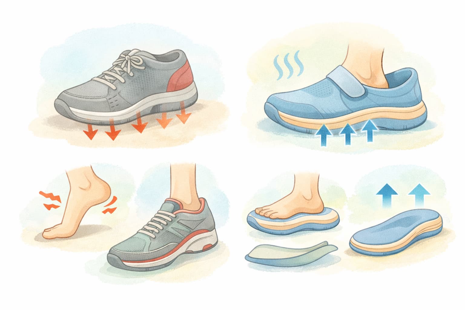 このように、クッション性・アーチサポート・体圧分散という複数の要素が組み合わさることで、単なる「柔らかい靴」とは異なる構造的なサポートが生まれています。